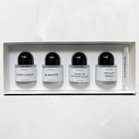 Byredo Perfume Gift Set (30ml x 4) - Super Cedar, Blanche, Mojave Ghost, Rose of No Man's Land Fragrance - High Quality Cologne for Women and Men